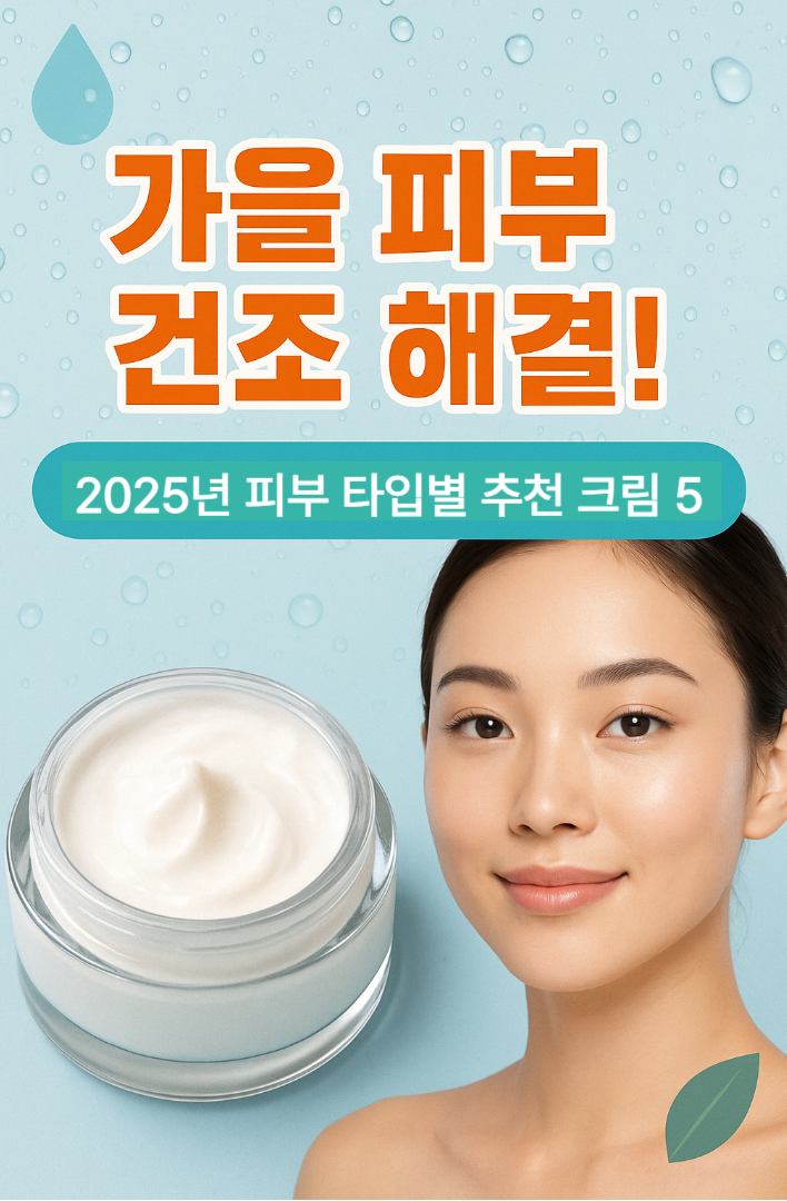 가을 환절기 피부 건조 해결! 2025년 추천 보습제 5선과 피부 타입별 맞춤 크림, 저자극·가성비 크림까지 한눈에. 아침·저녁 루틴 관리법으로 촉촉한 피부를 지켜보세요.