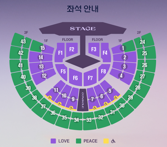 👉 정리하면, LOVE석은 현장감과 가까움, PEACE석은 전체적인 연출 감상에 강점이 있습니다.