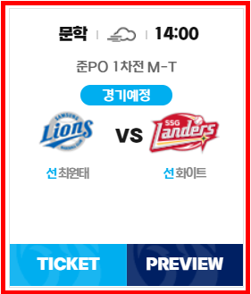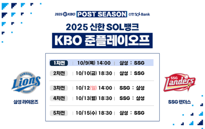 이번 준플레이오프는 SSG 랜더스(3위) vs 삼성 라이온즈(와일드카드 승자, 4위).