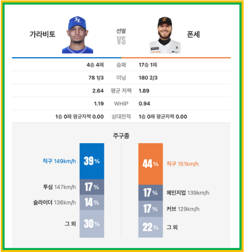 ✔ 에이스 맞대결 – 폰세 vs 가라비토