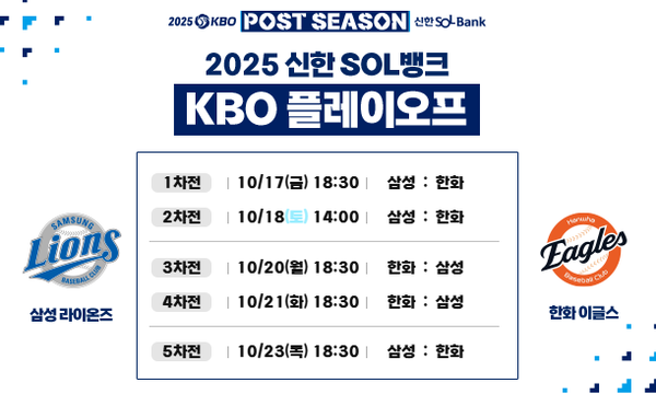 한화 이글스와 삼성 라이온즈가 10월 17일(금)부터 맞붙습니다.