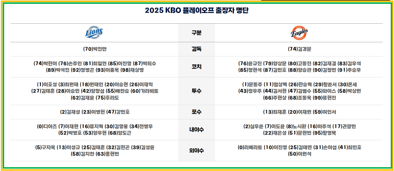 2025 KBO 플레이오프 1차전 한화 vs 삼성|중계 채널·경기시간·선발·시구 총정리