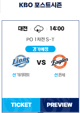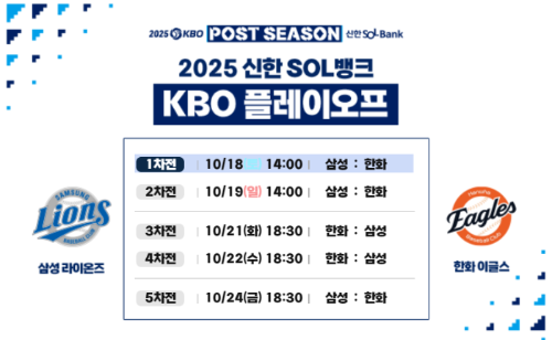 - 1차전: 10월 18일(토) 14:00 – 대전 한화생명 볼파크