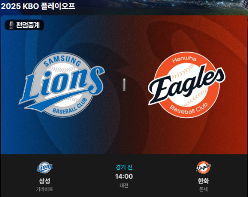 - 티빙 공식 페이지 : KBO 플레이오프 삼성 vs 한화 1차전