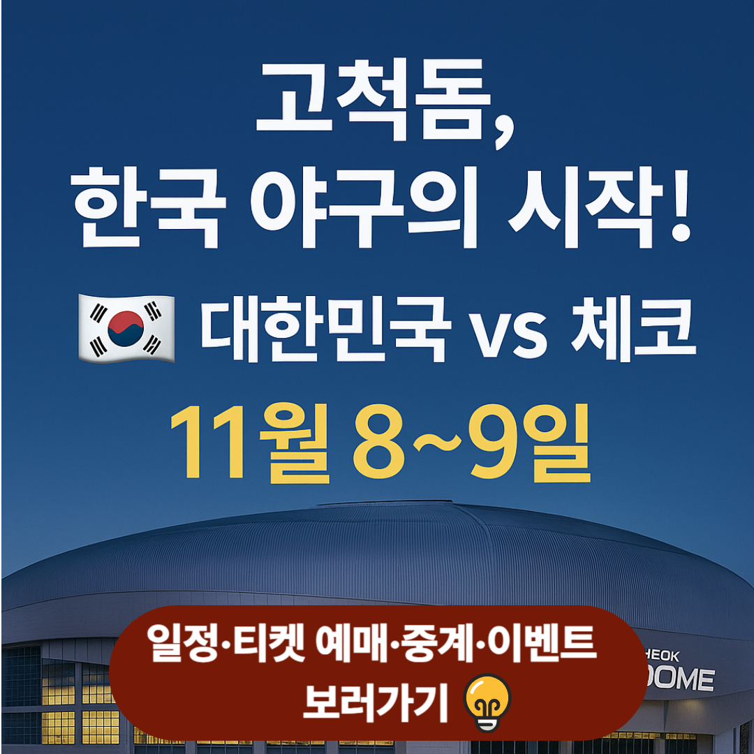 | 2025 대한민국 vs 체코 야구 평가전 예매 방법|고척돔 일정·티켓·멤버십 선예매 완벽 가이드 (0) | 2025.10.27 |