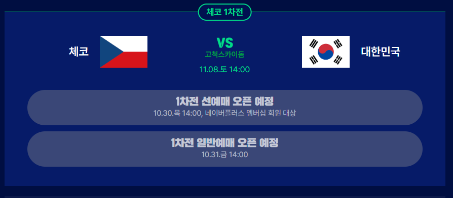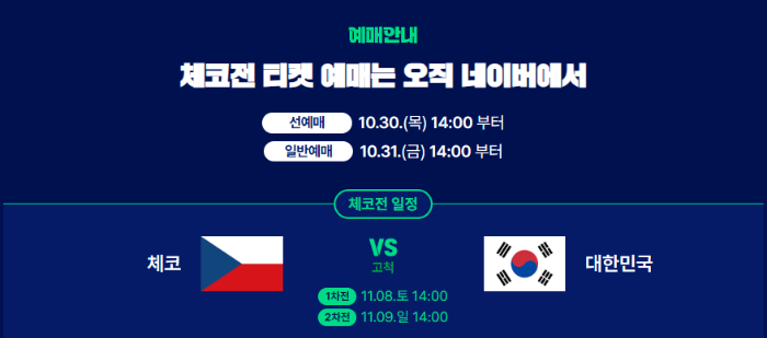 대한민국 vs 체코전 티켓 예매는 네이버 단독 진행입니다.