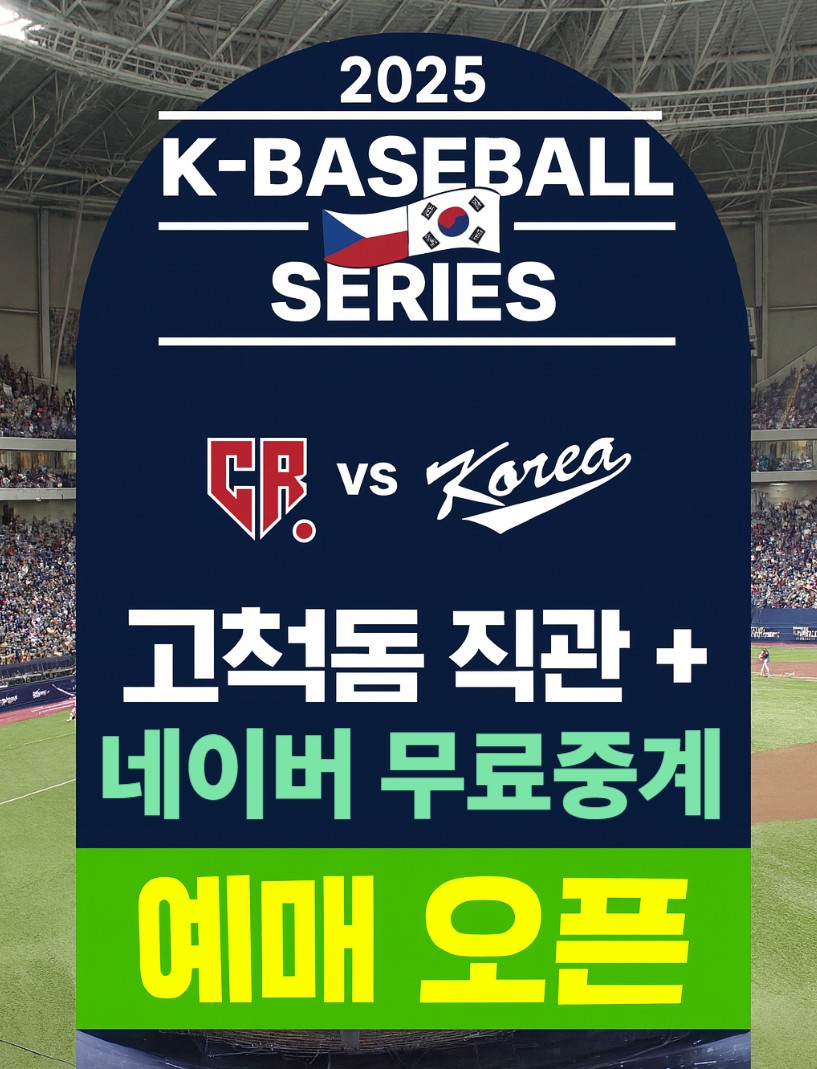 2025년 11월 8~9일, 서울 고척스카이돔에서 열리는 대한민국 vs 체코 야구 평가전! 네이버 단독 예매·멤버십 선예매·좌석 추천·무료 중계·현장 이벤트까지 직관 전 필수 정보를 한눈에 확인하세요. 🎟️티켓 예매 바로가기